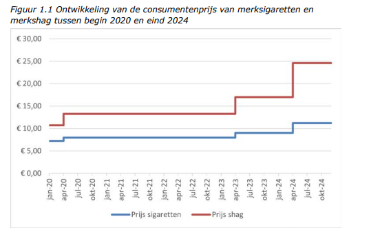 Het effect van de laatste accijnsverhoging (2024) op rookgedrag is minder groot dan het effect van de eerste twee verhogingen. Ook blijkt dat na deze laatste verhoging veel meer mensen hun tabaksproducten in het buitenland zijn gaan kopen, zoals in Duitsland en Luxemburg. Naar schatting kwam in 2024 ruim 60 procent van alle tabaksproducten die Nederlanders roken uit het buitenland. In 2023 was dat ongeveer 38 procent en in 2020 30 procent. De sterke stijging van de aankopen in het buitenland kwam doordat de accijnsverhoging in 2024 veel hoger was (24 procent voor sigaretten en 45 procent voor shag) dan in de jaren ervoor (11 procent voor sigaretten, 28 procent voor shag).