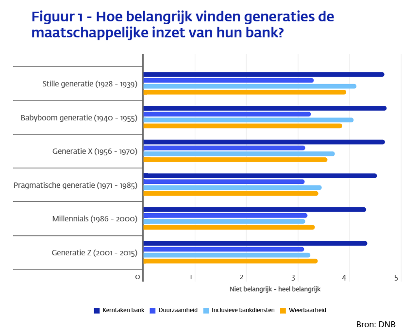 Bron tekst en figuur: nieuwsbericht DNB 10 december, Oudere bankklant socialer en groener ingesteld dan jongere.